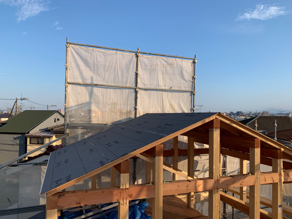 本日、ルーフィング施工が行われました。