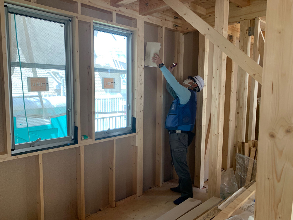 指定の箇所に金物がついているか、耐力壁の釘のピッチは、規定通りかチェックしてもらいます。
