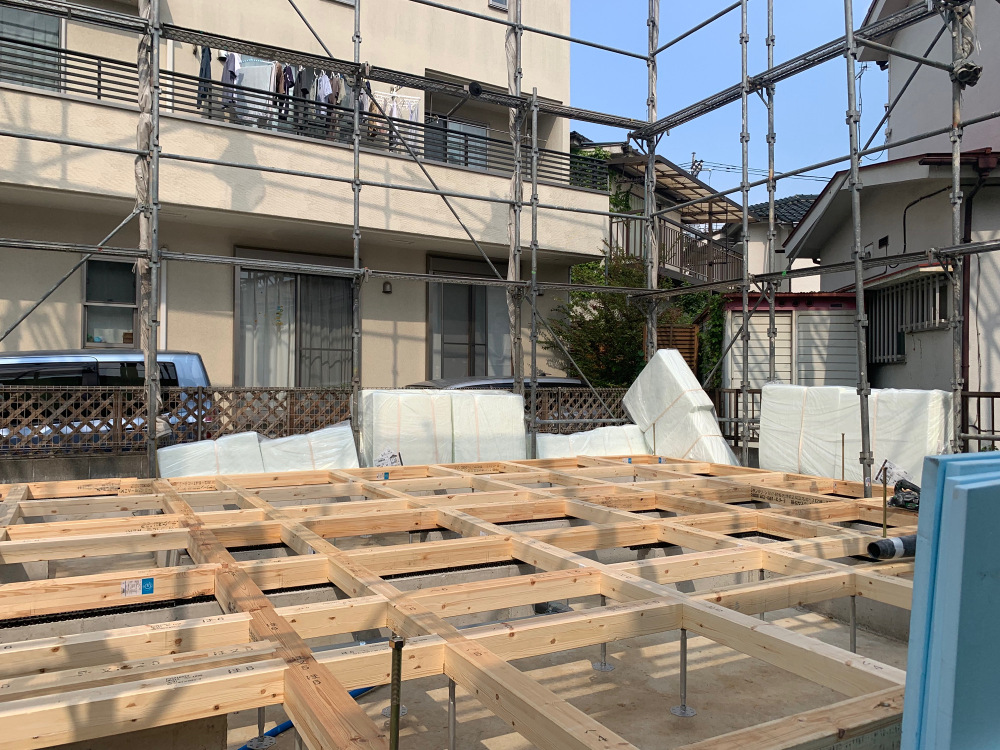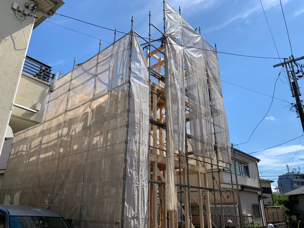 建物を建てる前に足場を先に組むことによって転落のリスクを下げたり、足場があるために上棟作業がしやすくなります。