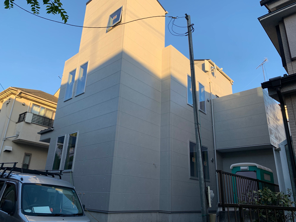 外壁の仕上げは、コンクリートの質感をリアルに再現したニチハのサイディングを使用しています。