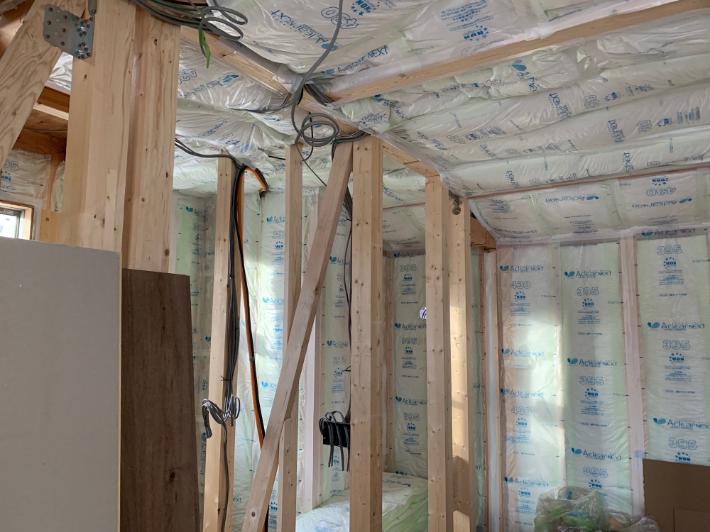 断熱材施工中写真です。