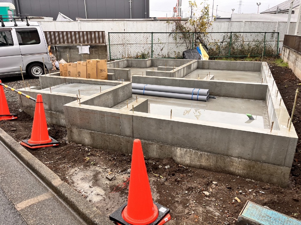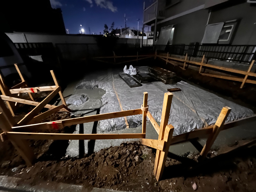 この後、基礎の高さが正しいかレベルチェックを行います。