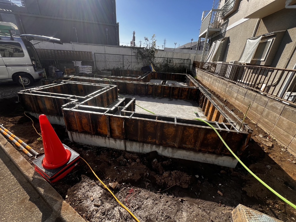 鉄筋を組んでいく際の墨出しや枠材の固定等に必要な工程です。