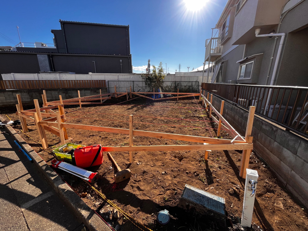 この遣り方とは、基礎工事に重要な情報が示されている囲いの様なものです。