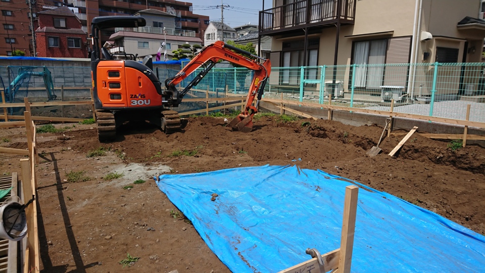根伐りとは、建物(基礎)の形状に地面を掘り進める作業の事です。