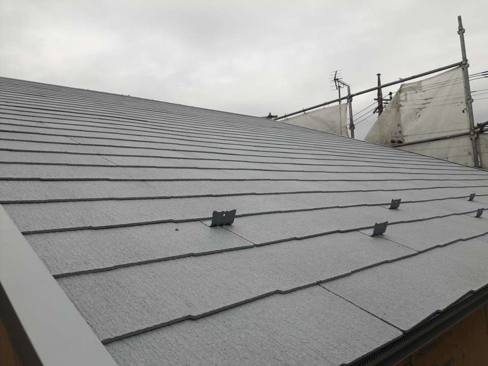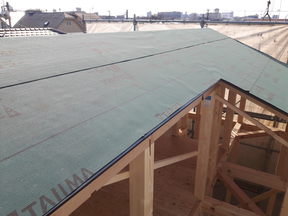 前に施工したルーフィングの上に施工し、これで完全に下部室内への侵入はなくなります。