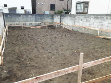 基礎工事着工前に、材木を使用した囲いを作りました。