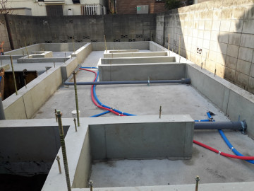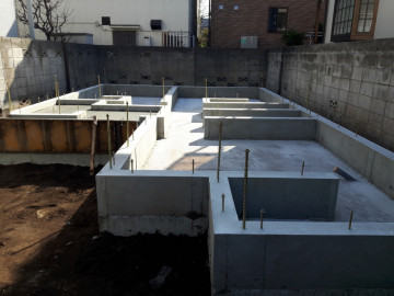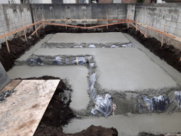 基礎コンクリートの養生が終了し、基礎の全景が見れるようになりました。