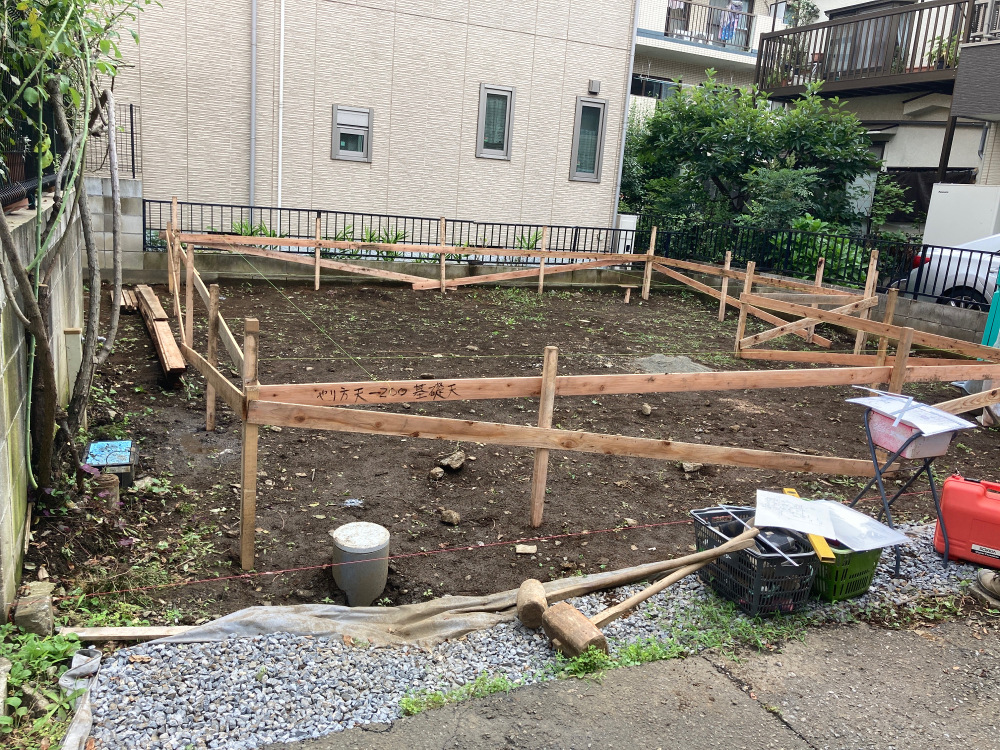 遣り方とは、敷地に対する基礎の配置や、基礎の高さ・直角・幅などの情報を基礎屋さんにわかりやすくするための囲いのようなものです。