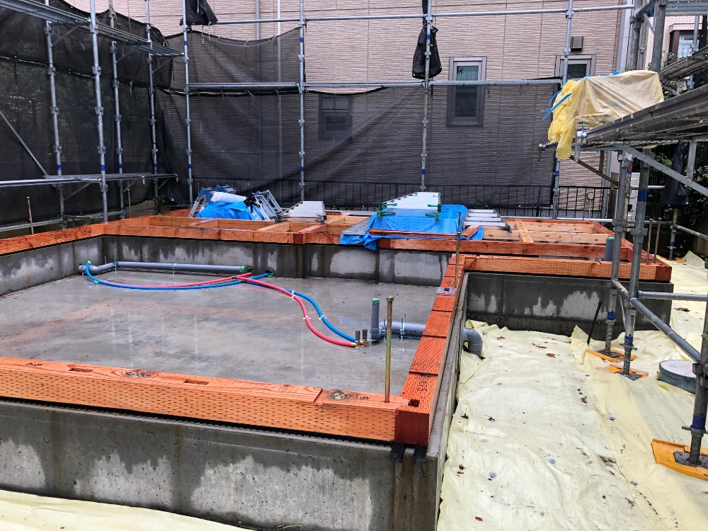 本日、立ち上がりの部分にコンクリートを打設しました。