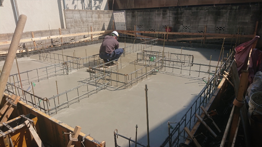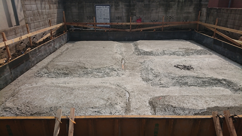 基礎工事:耐圧盤の生コン打設をおこないました。