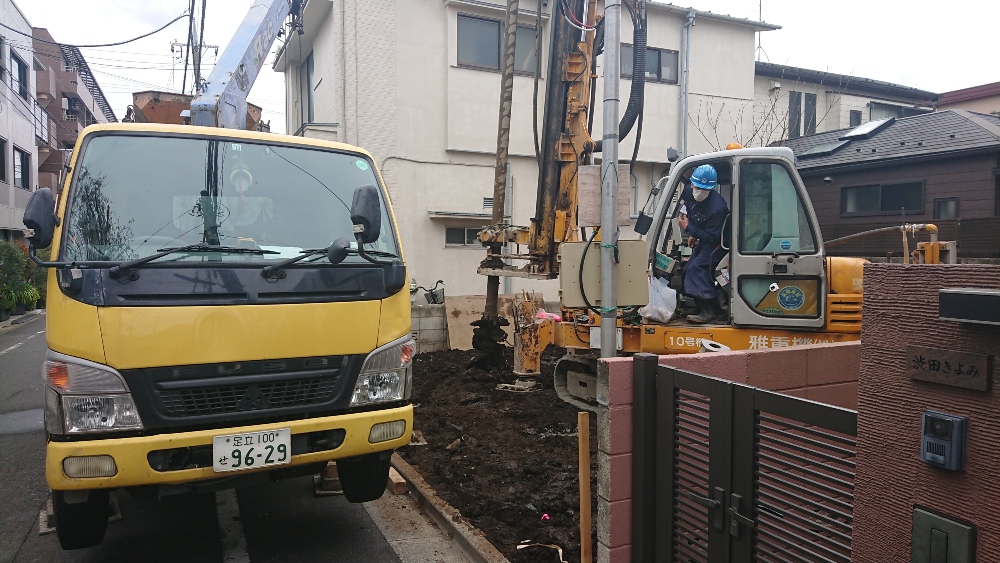 建物への雨による土の跳ね返り防止や建物工事中の釘やビス等が地面に混ざりこまないようにするための処置です。
