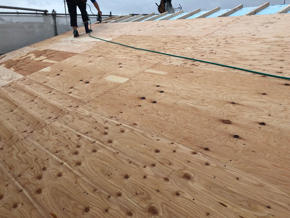 この上にルーフィングを貼り、仕上げ材の施工に移行します。