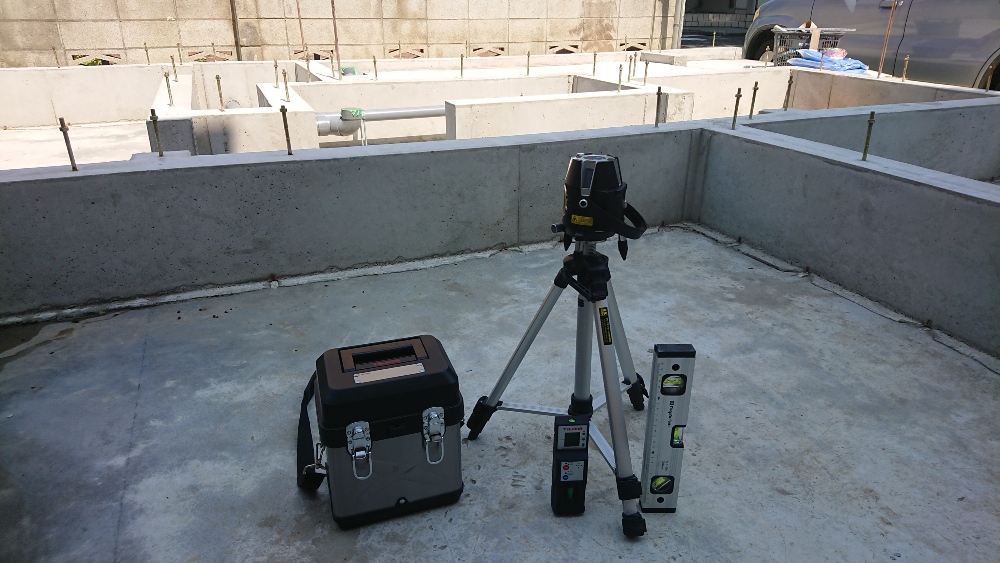 基礎工事完了に伴い、基礎の天端レベルチェックを