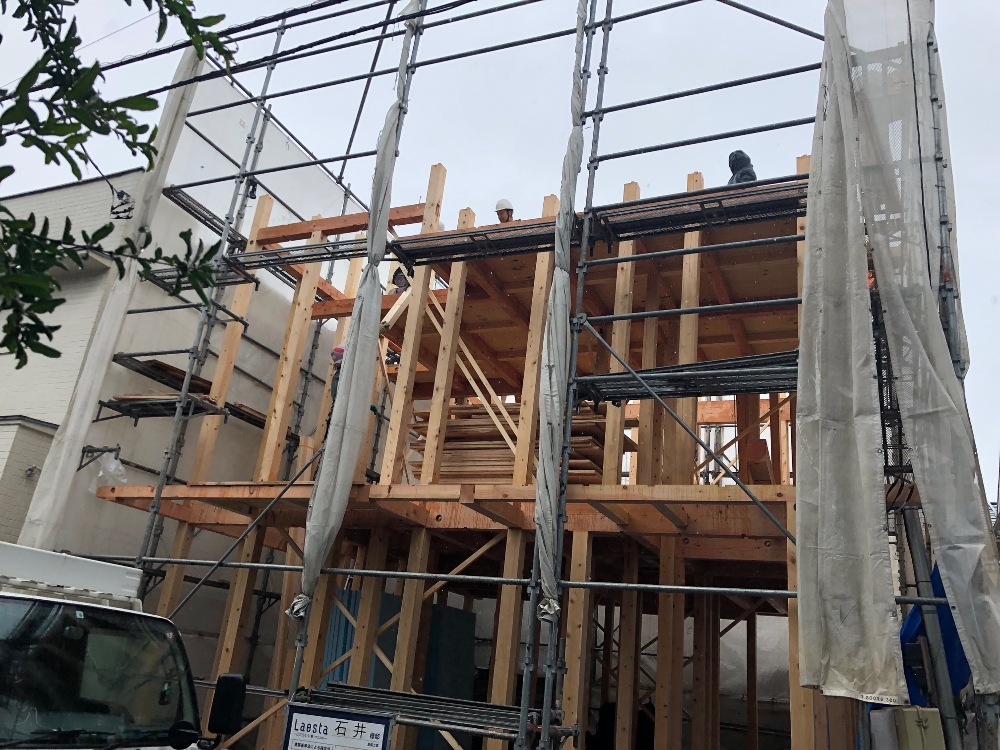 本日雨が降る中、職人さんたちの手によって無事に上棟いたしました。
