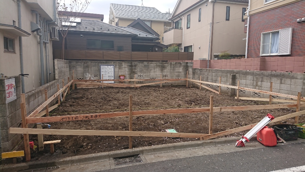 基礎工事に重要な、建物の配置や基礎の高さ・幅・直角などの