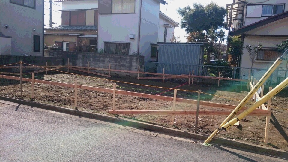 やり方作業とは、工事着手の前に、建物の正確な位置・高さ・水平などを決める作業のことです。ジェネシスでは、複数の現場監督たちでチェックしながら半日強かけて行っています。こちらは作業完了後の写真。
