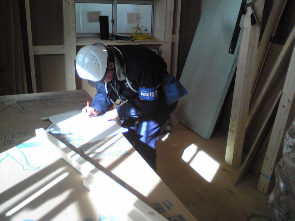 本日は建物の躯体や断熱材に問題がないか、第三者機関によるチェックを行いました。この検査に合格しなければ、次の工程へ進むことができない大切な工程のひとつです。