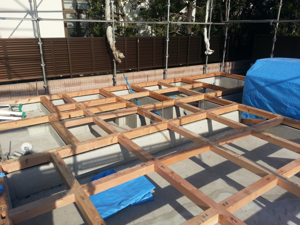 先日基礎工事が完了し、土台敷きを行ったところです。次はいよいよ上棟です!