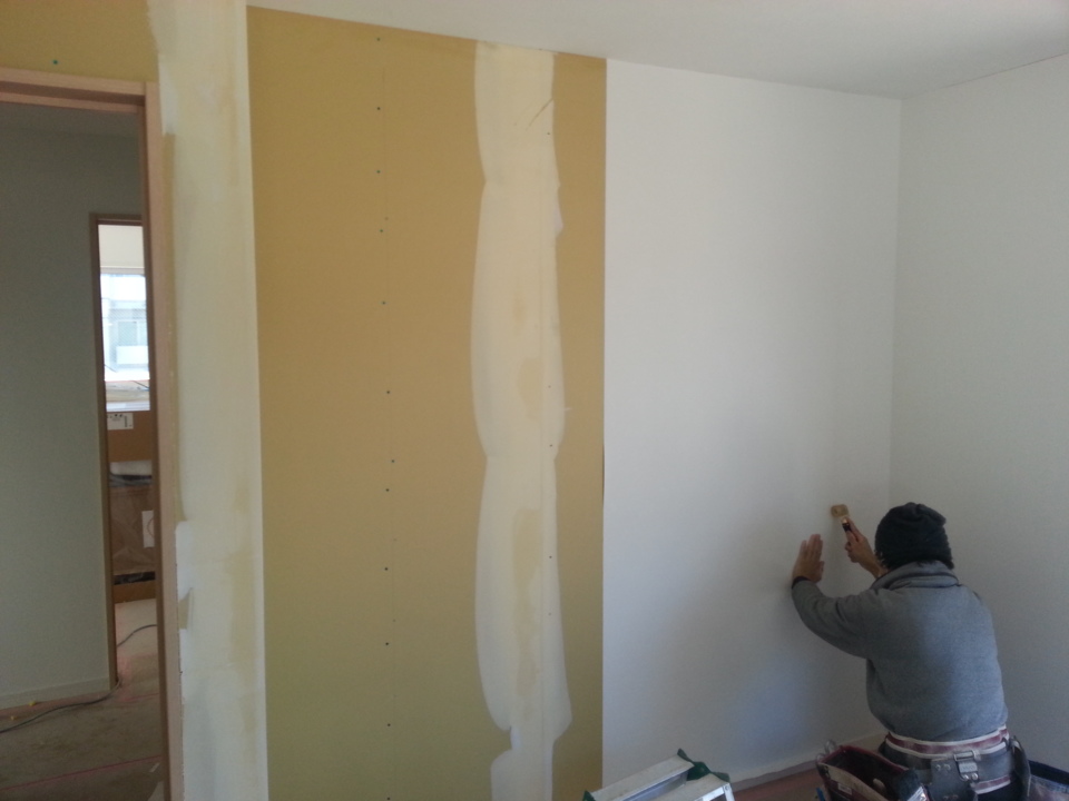 大工さんが石膏ボードを天井、壁面に施工した後におこないます。