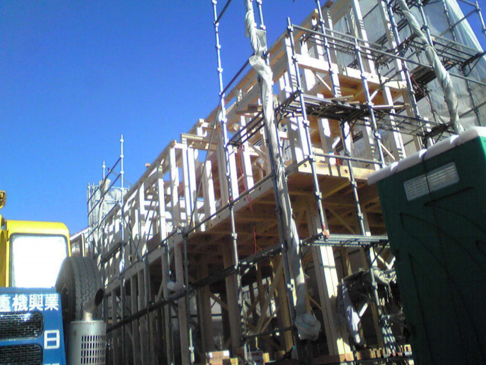 お天気も良好の中、作業完了です。家のかたちが見えてきました!