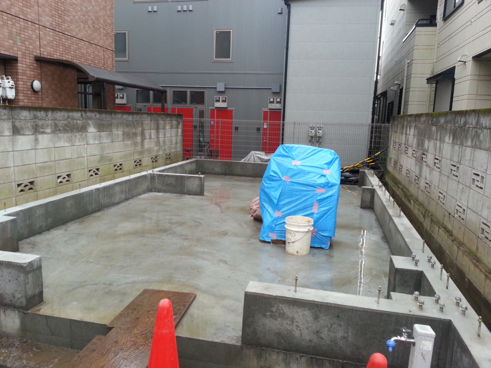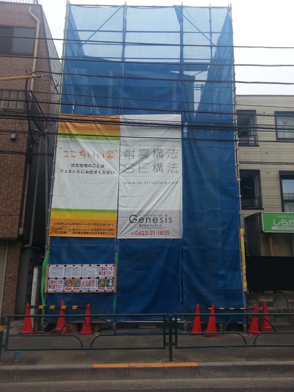 ただ今、シートの内側では防蟻施工、外壁下地の作業中です。