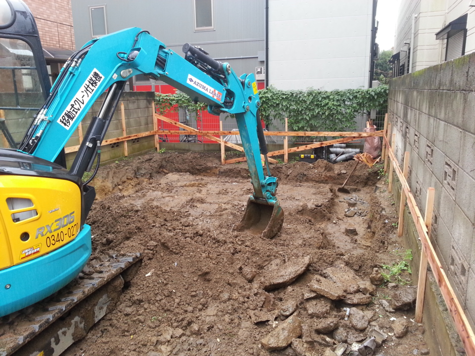基礎工事が着工いたしました。ただ今整地作業中です。