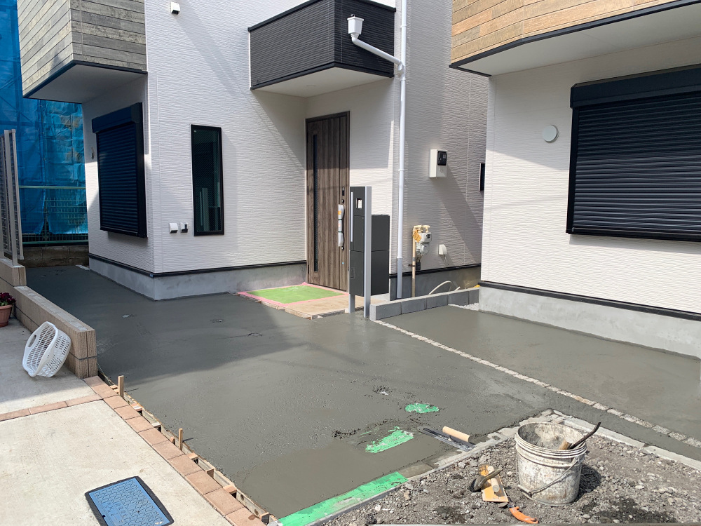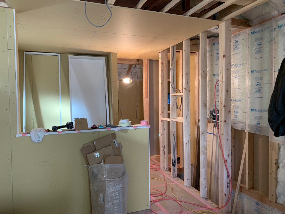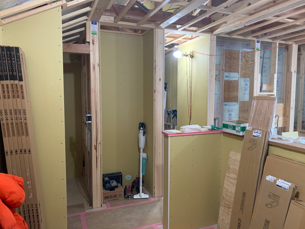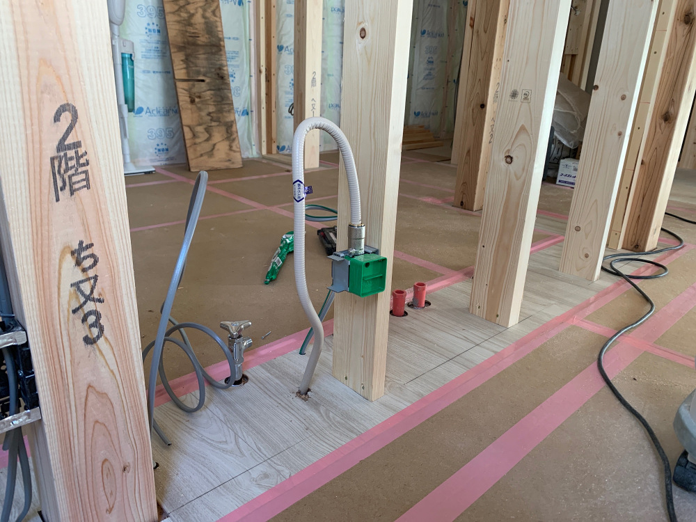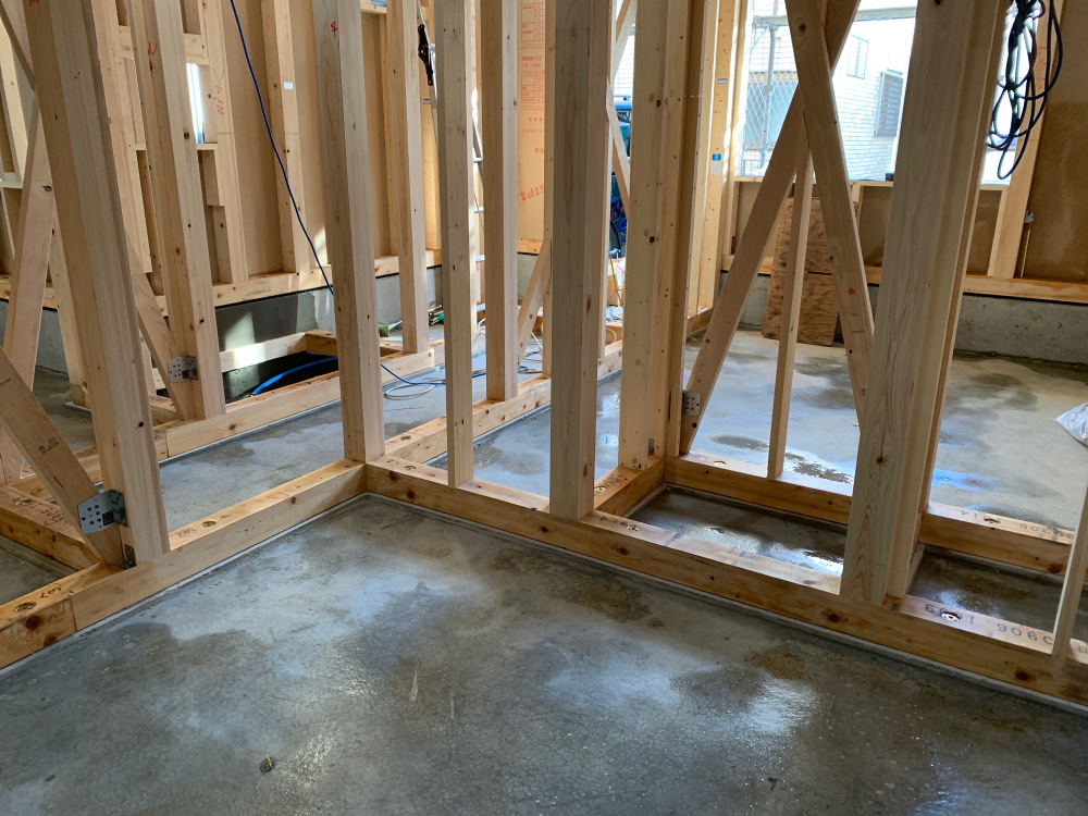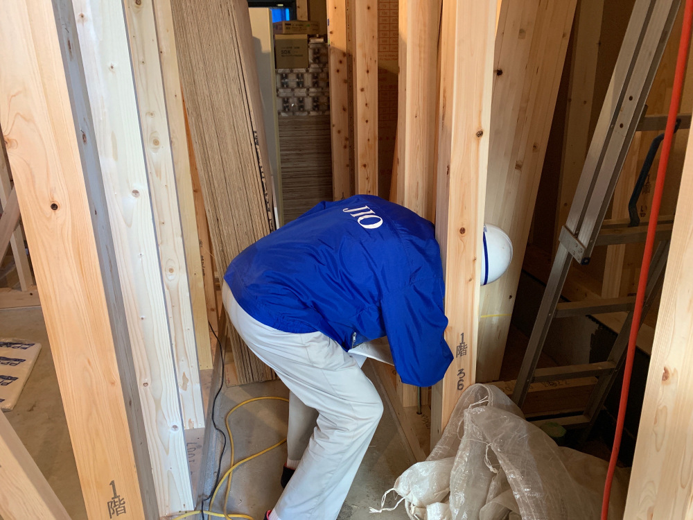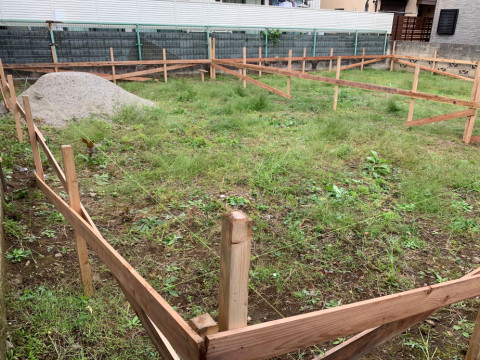 やり方作業を行いました。敷地に対する建物(基礎)の配置、基礎の高さ・幅・直角などの情報が職人さんに理解をしてもらえます。