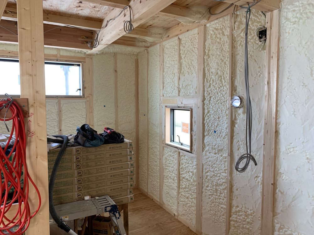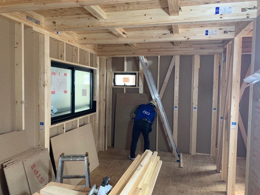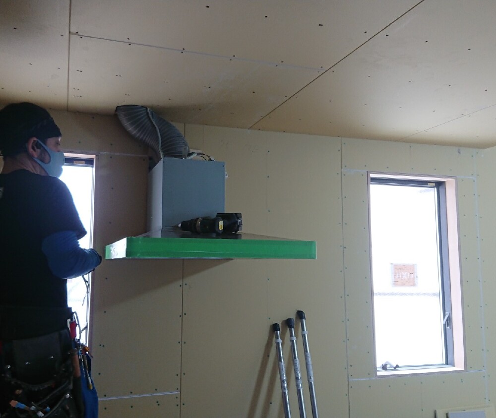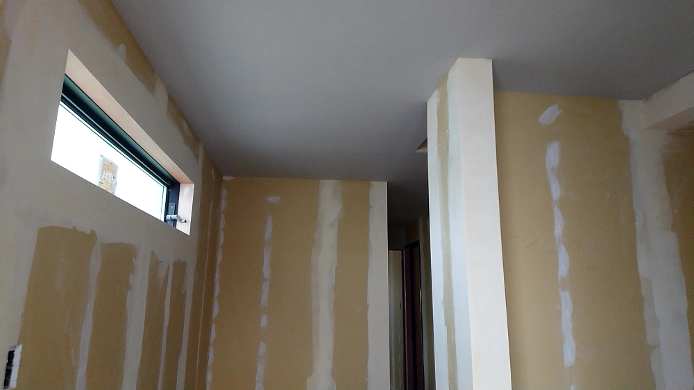 ボード施工が完了したので、これから室内クロスを貼る施工がはじまります。