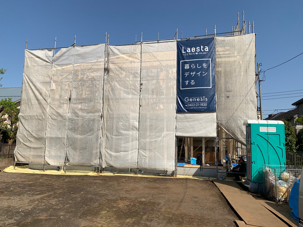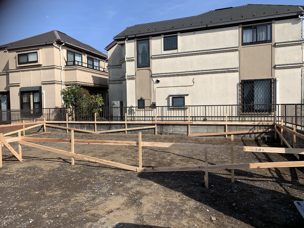 基礎工事前のやり方を施工しました。敷地に対する建物(基礎)の配置、基礎の高さ・幅・直角などの情報がこのやり方で職人さんに理解をしてもらえます。