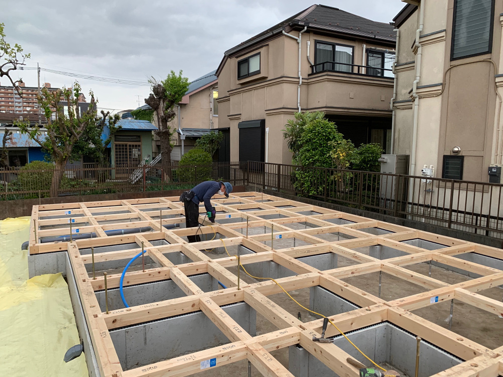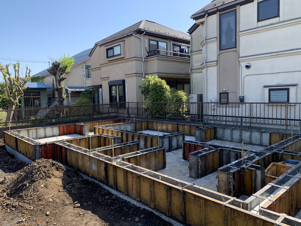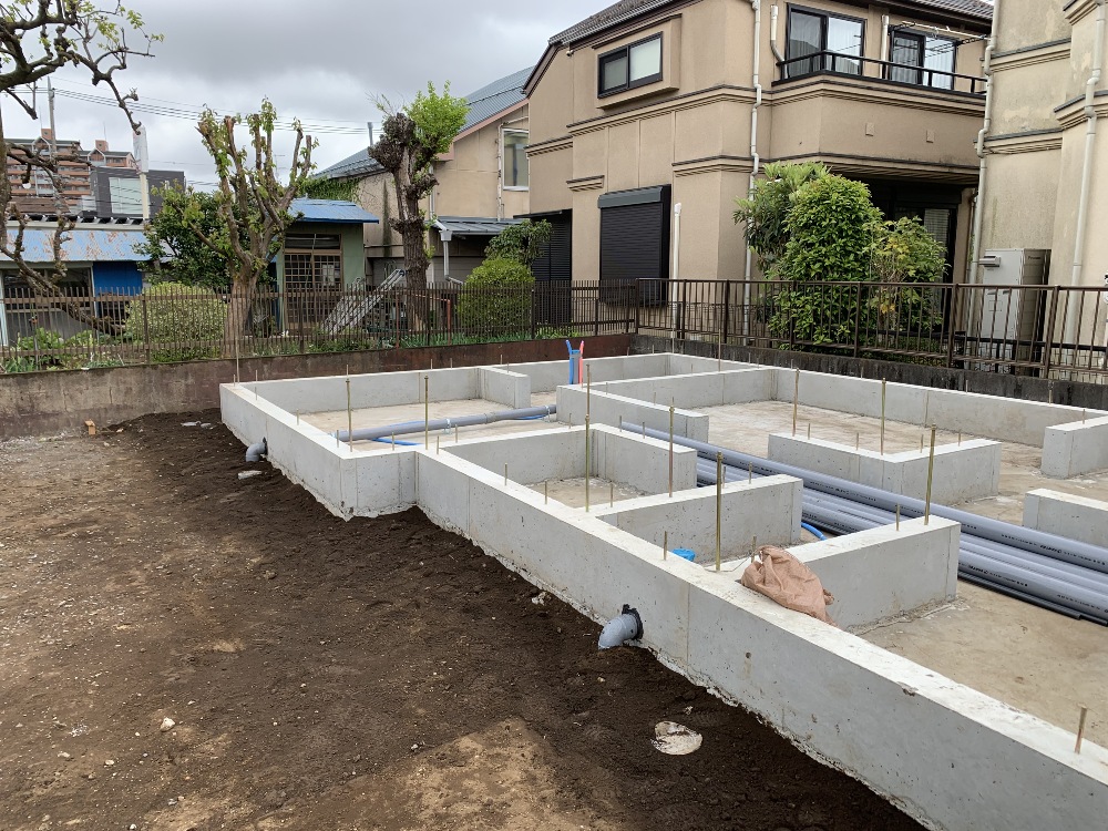 基礎が完了し、配管の施工中です。この後土台を敷き、いよいよ上棟となります。