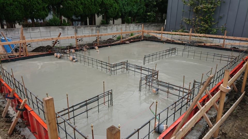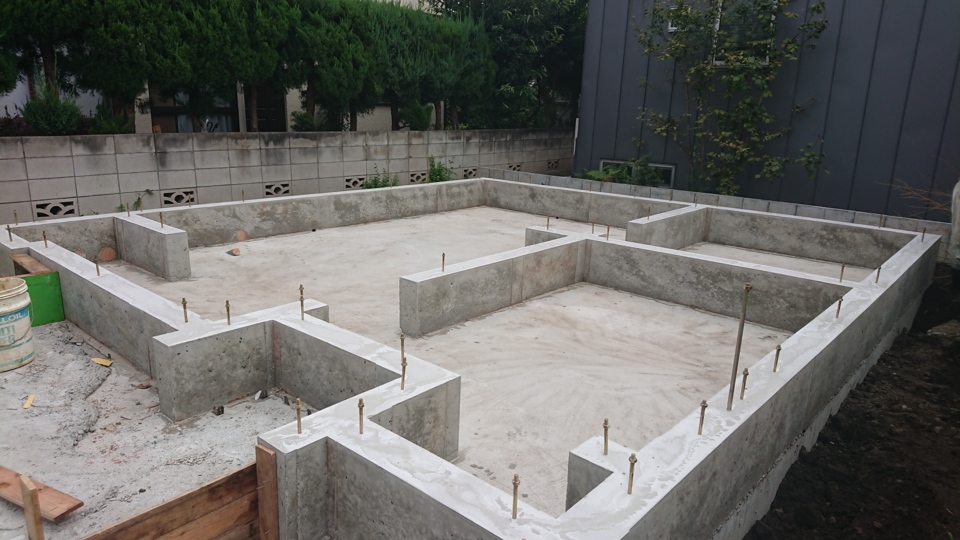 基礎工事の立上り部分のコンクリートの打設が完了しました。
