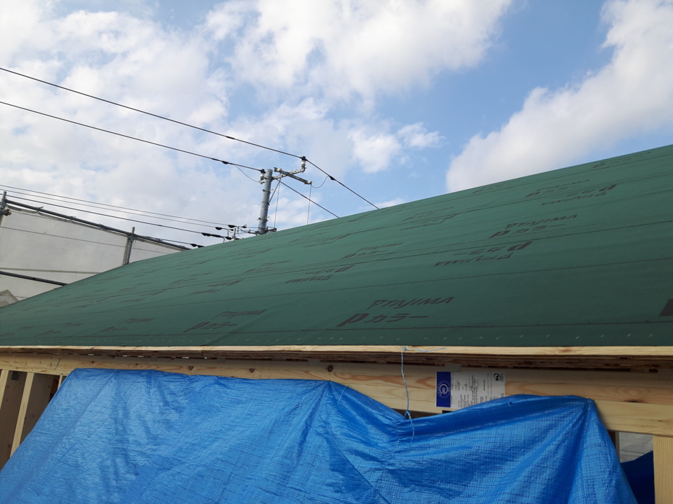 ルーフィングとは屋根の下地材(構造用ベニヤ)を施工した上に張り広げる防水シートのようなものです。