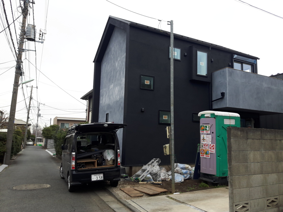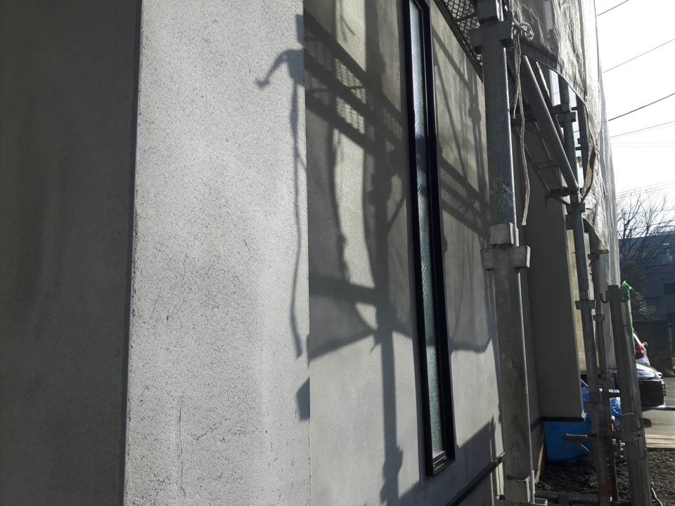 モルタルが完了しますと、養生期間とり今度は吹付工事へと工程が進みます。