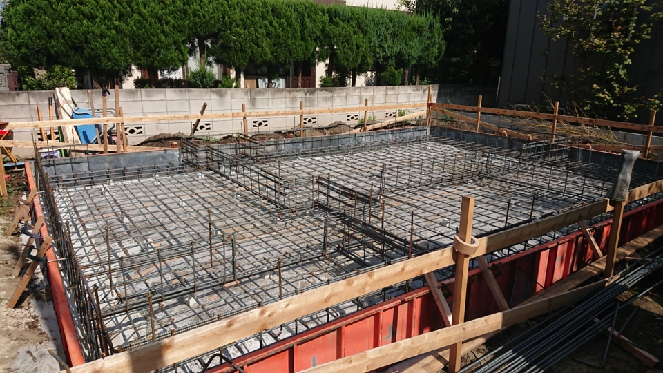 設計士作成の基礎伏図の通りに配筋をし、第三者機関の検査を受けます。