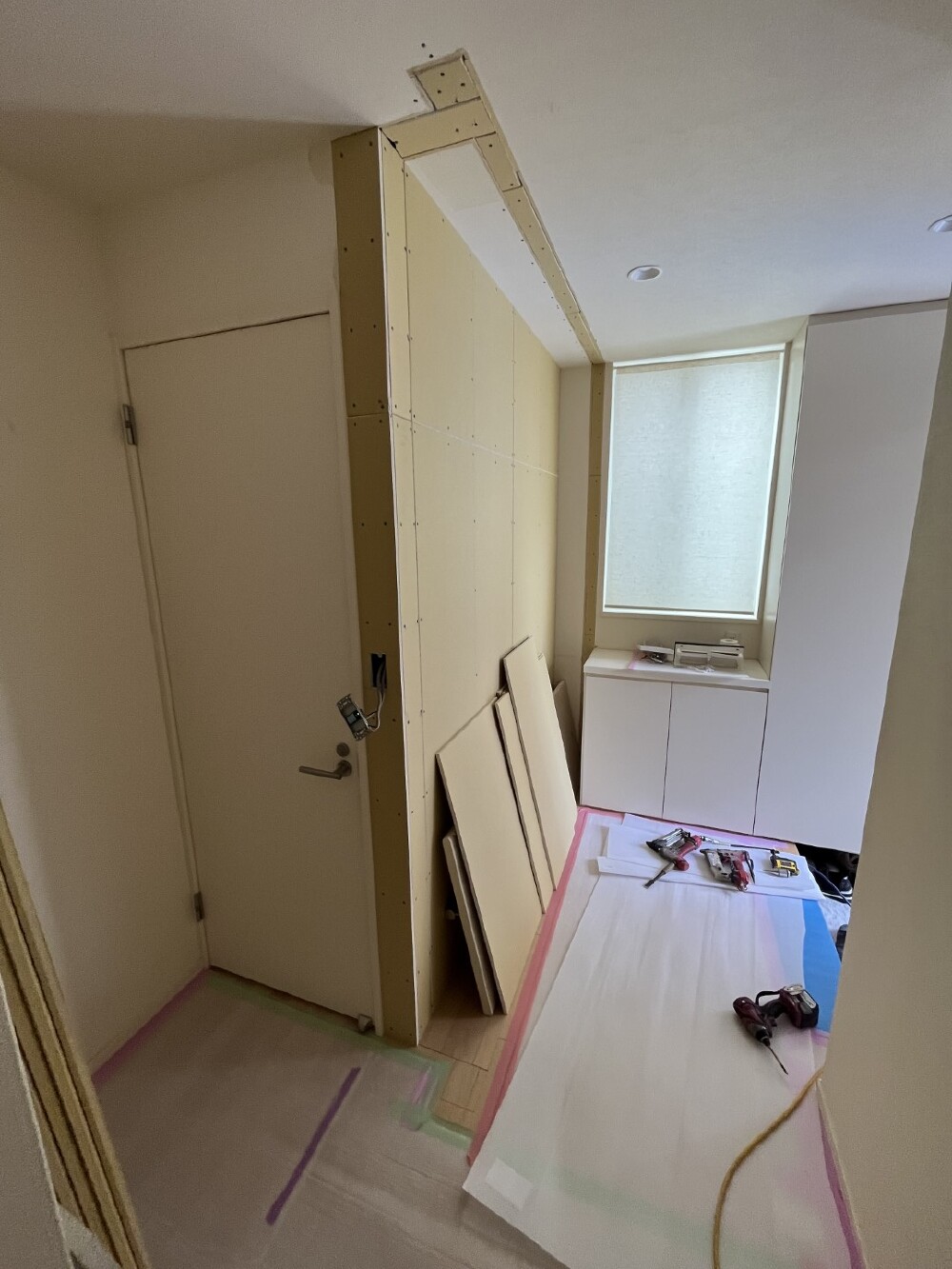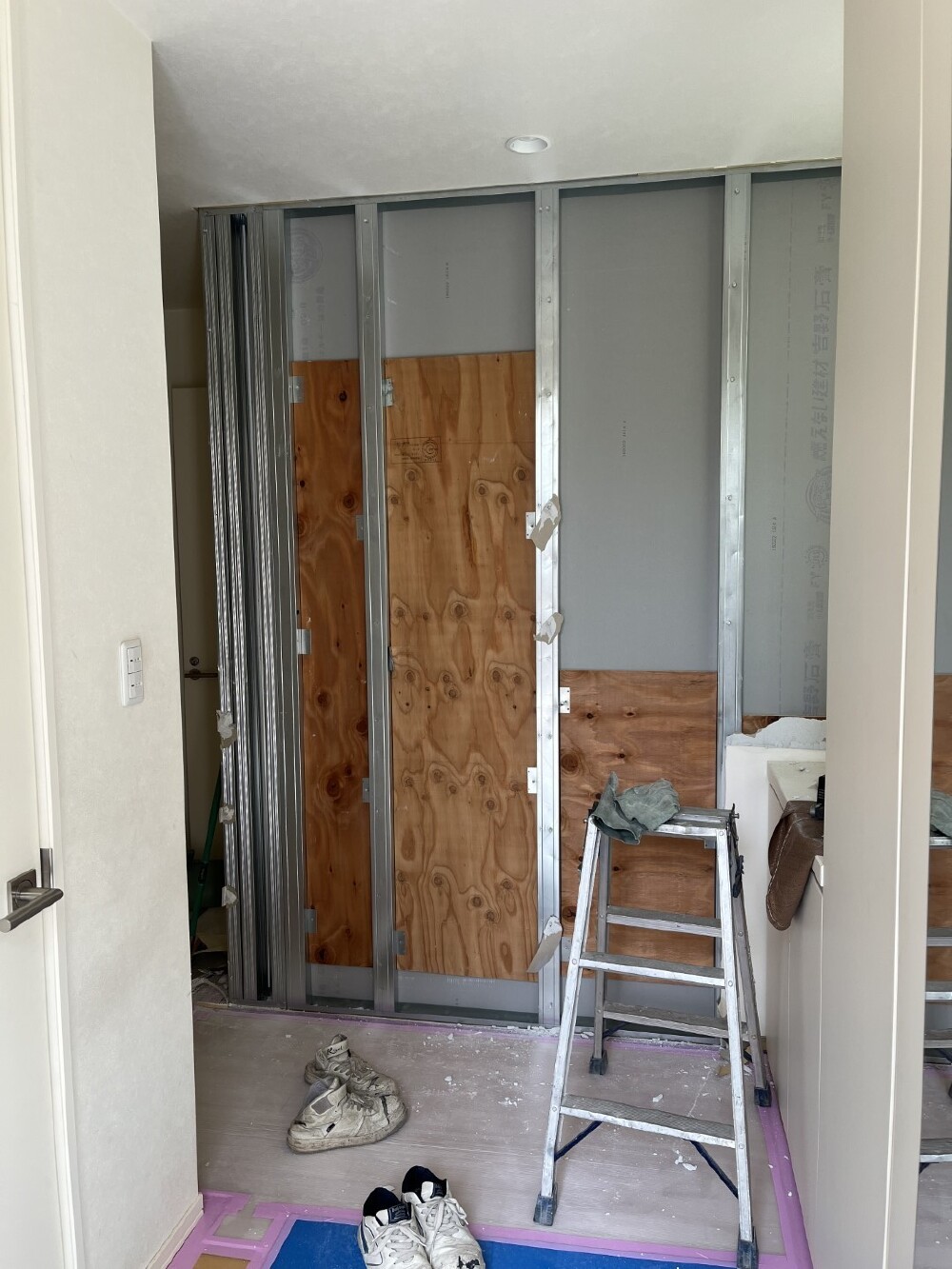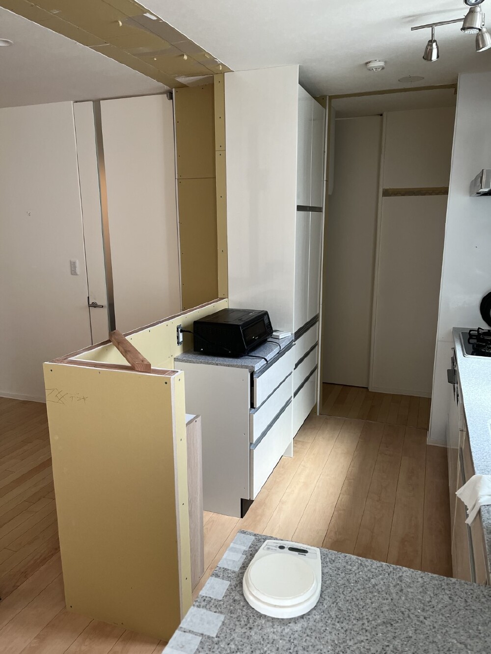 新しいカップボードの配置に合わせて新しく壁をつくっていきます。
