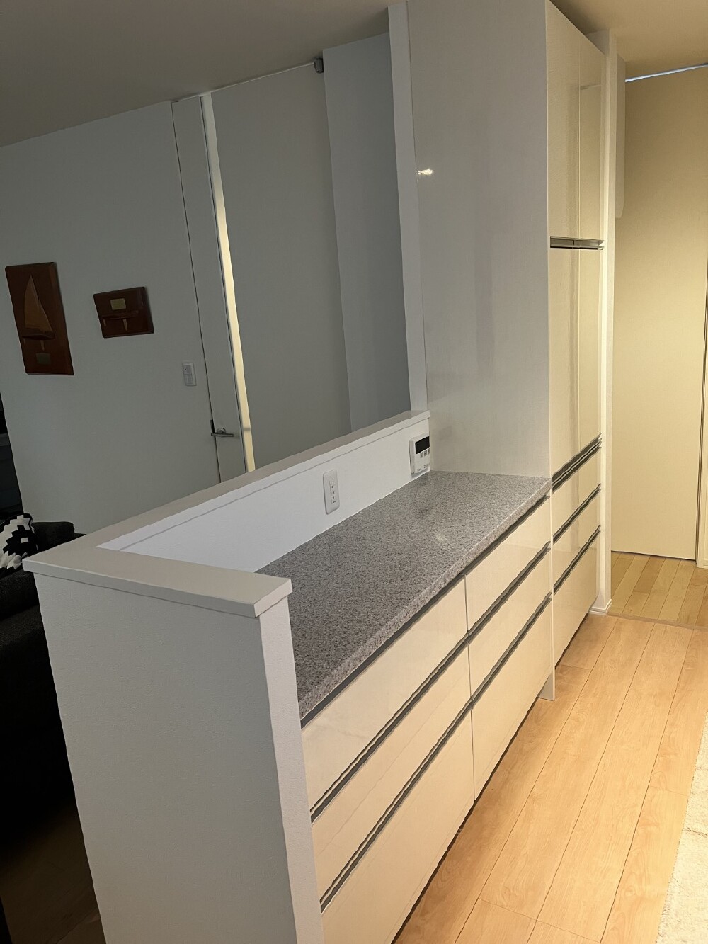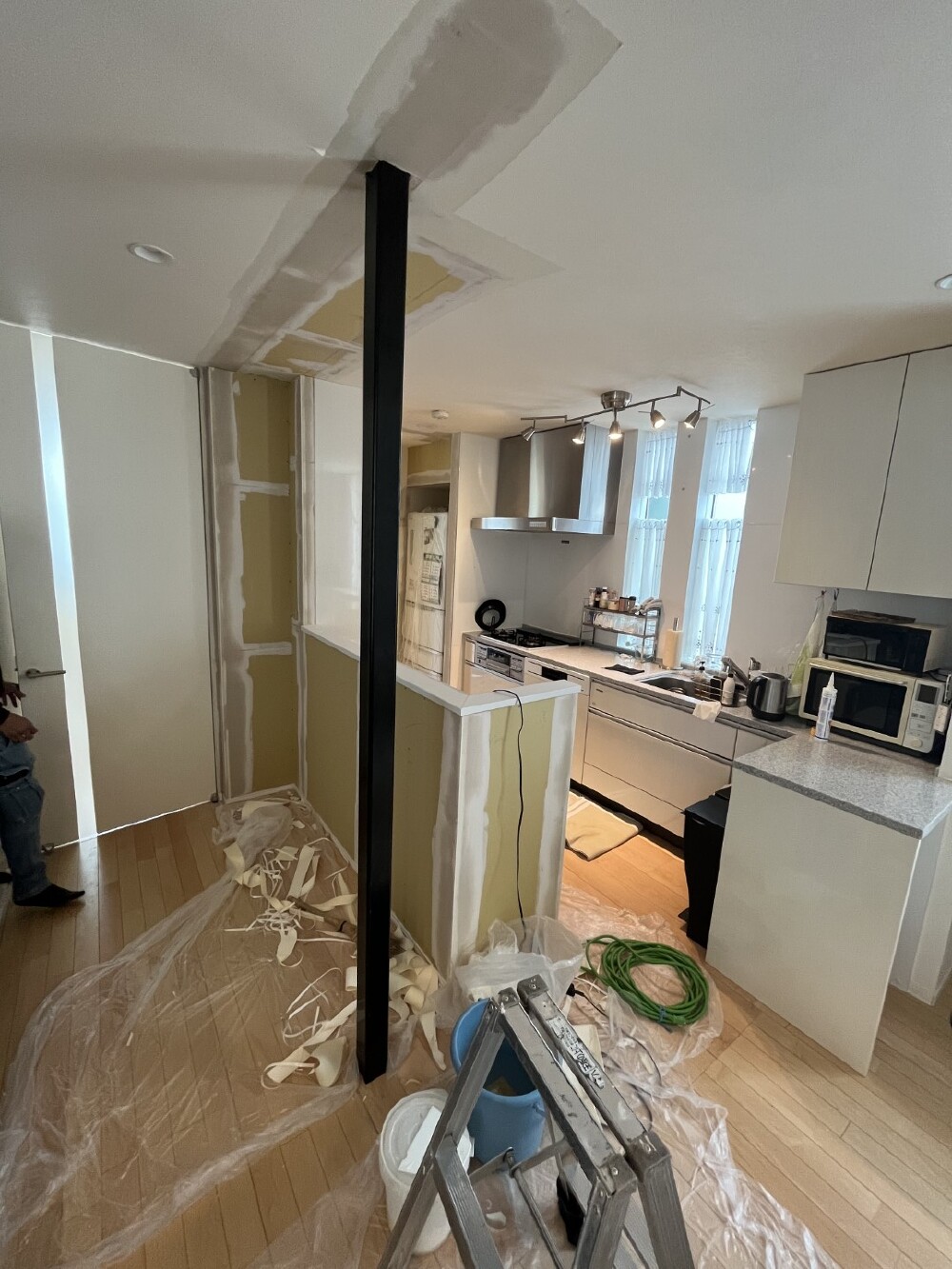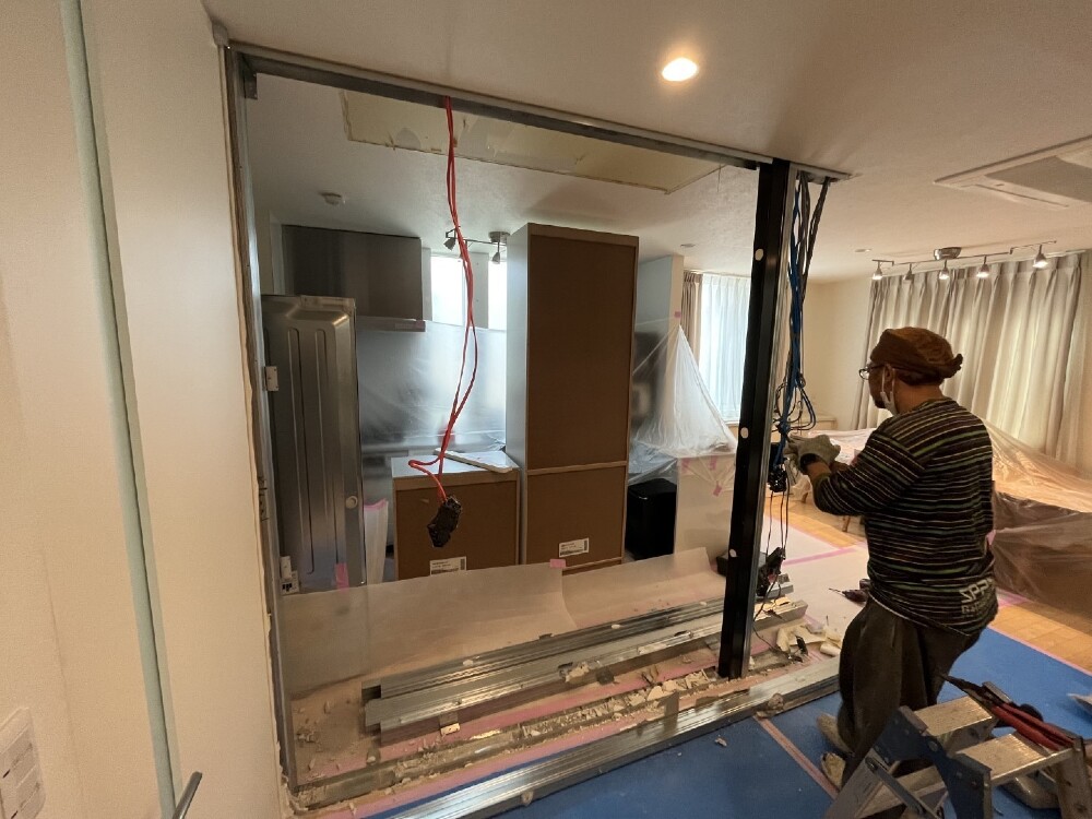 新しいカップボードの配置に合わせて新しく壁をつくっていきます。