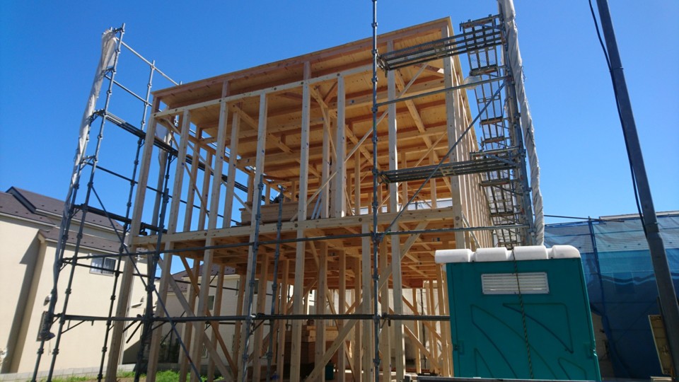 暑くて休憩をしながらの作業になりましたが、無事に上棟し屋根下地まで完了いたしました。