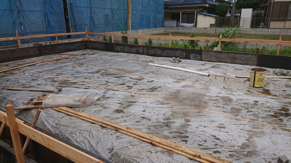 関東地方も梅雨に入りましたが、施工日は晴天に恵まれ無事にコンクリートの打設が完了いたしました。