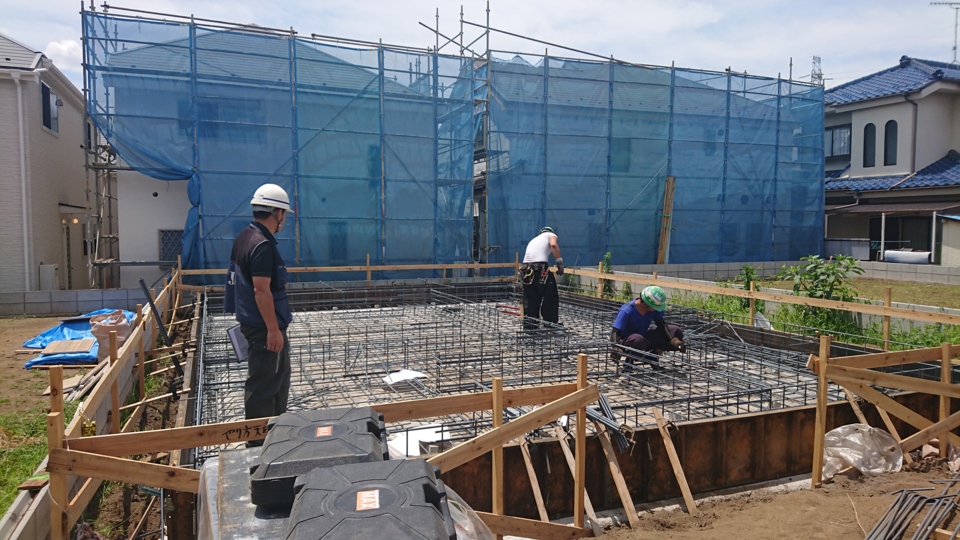 設計士作成の基礎伏図をもとに鉄筋を配列しその状態を検査してもらいます。