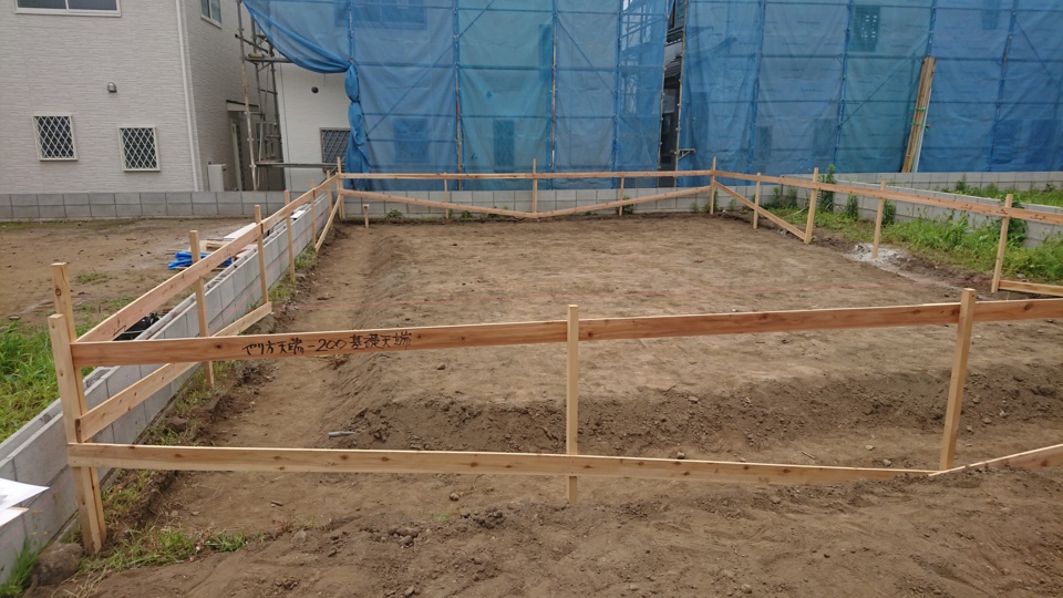 会社によっては基礎業者さんに【遣り方】施工を任せることもありますが、弊社では細かいチャック等もありますので自社で行っています。