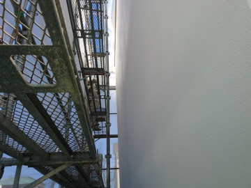 モルタル施工が完了し、仕上げの吹付工事へと工程が進んでおります。