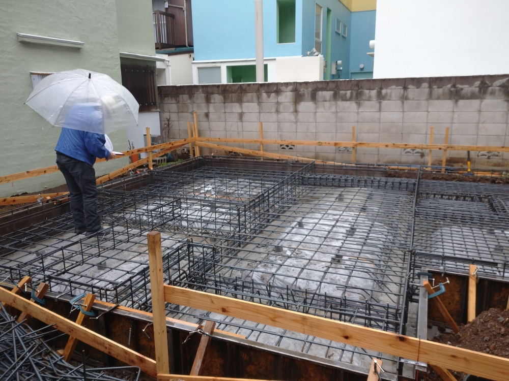 問題なく合格しましたので、耐圧コンクリートを打つ工程に進みます。