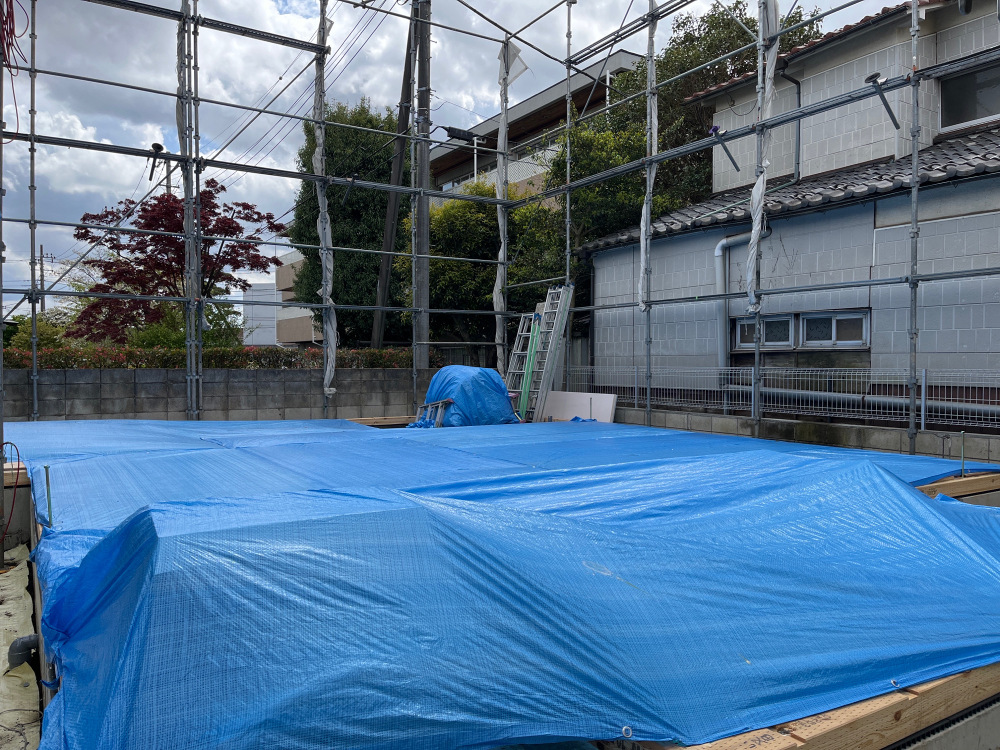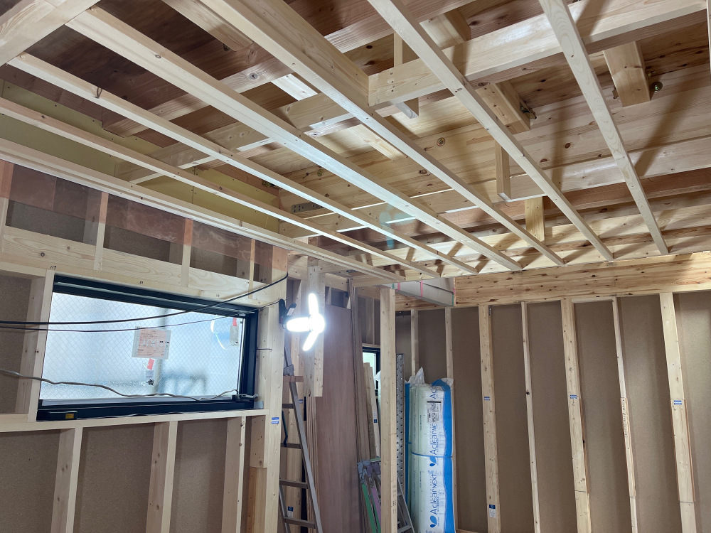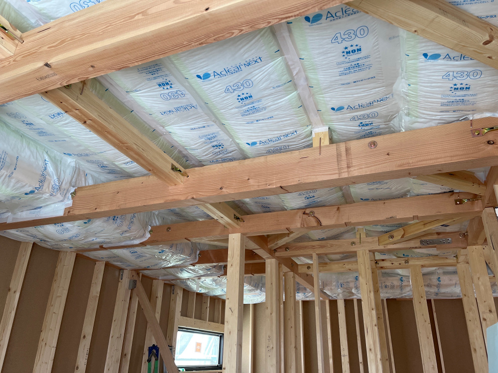 この後、防水の役割を持つルーフィング施工をし、仕上げの屋根材施工となります。