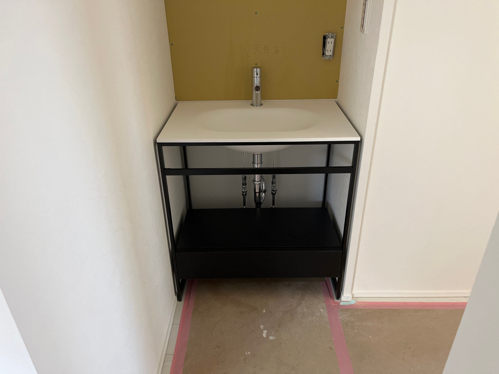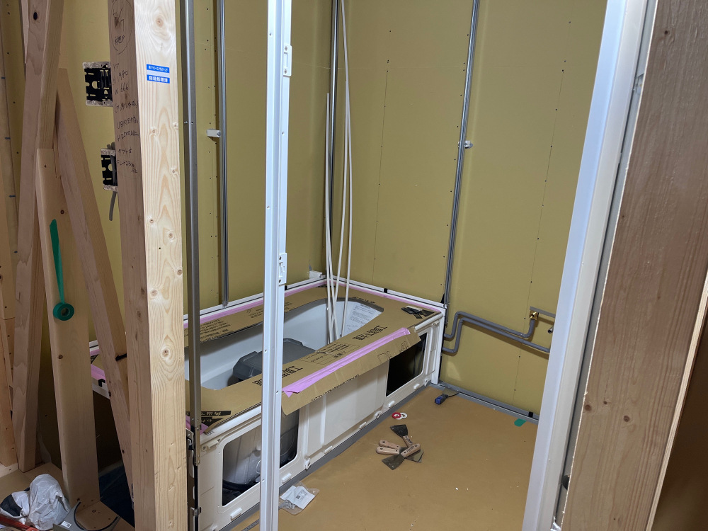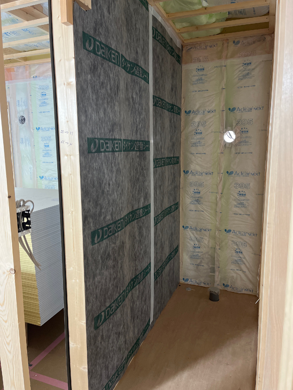 トイレの水の流れる音を軽減するために、防音壁を施工しました。