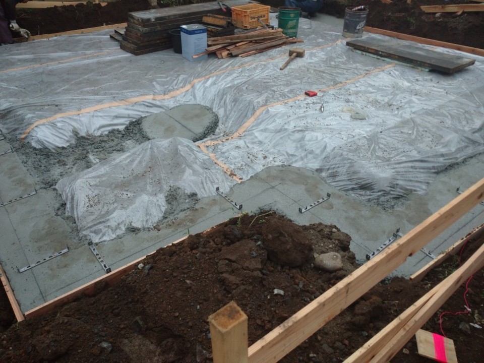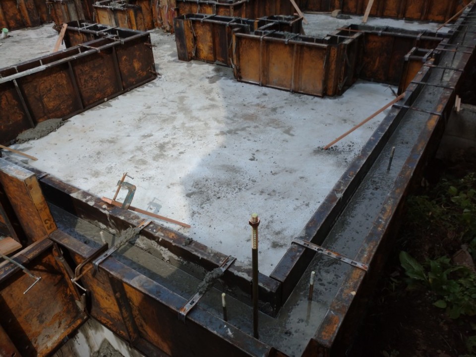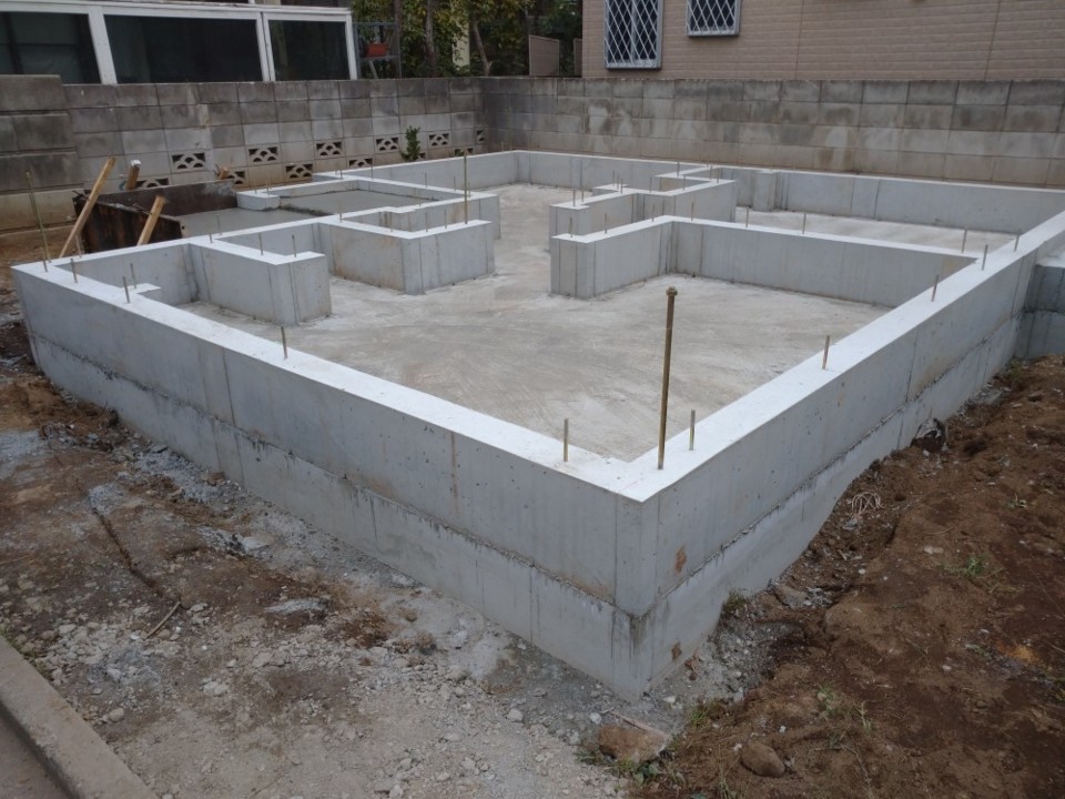 コンクリートが固まるまで養生期間をもうけ枠バラシをし、基礎完了になります。