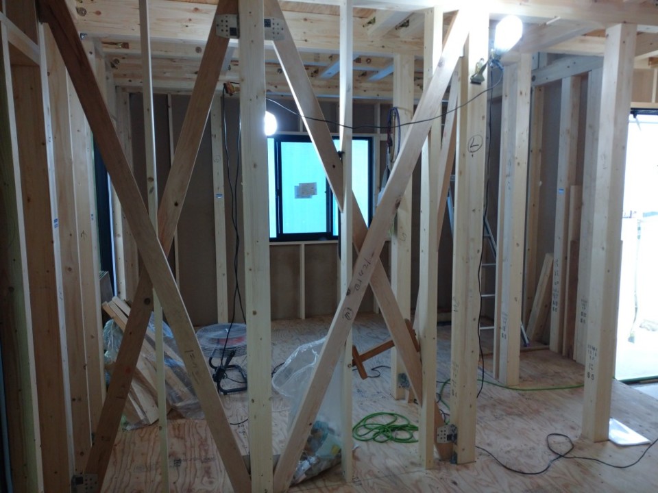 金物、耐力面材がしっかり施工されているかチェックを受けます。