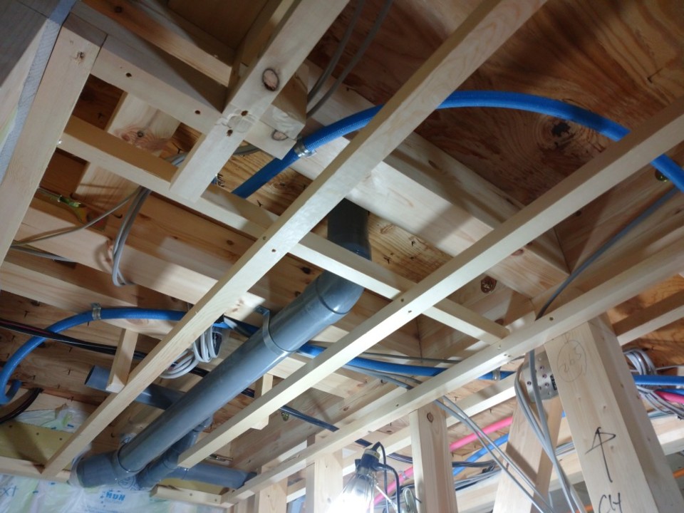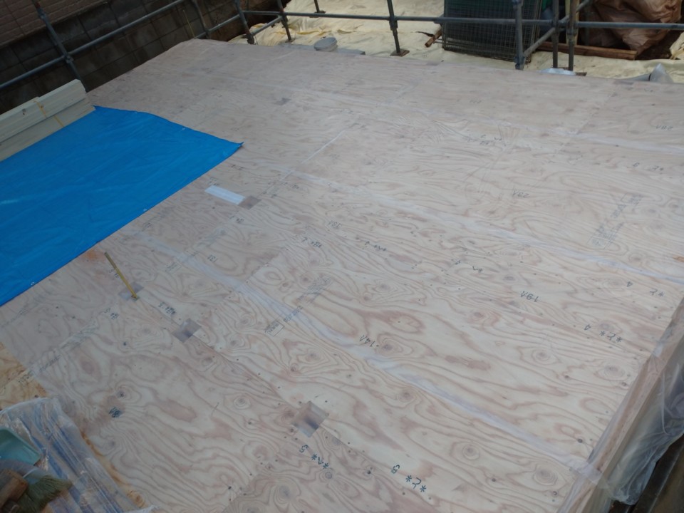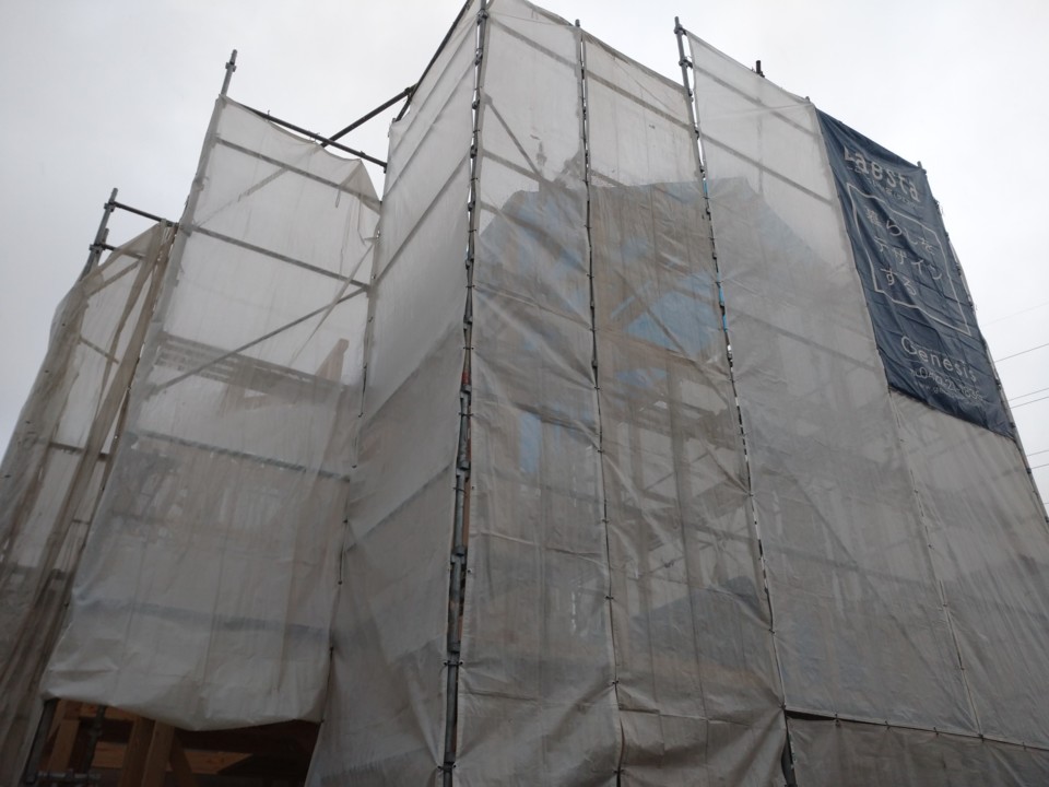 キッチンやトイレなどの住宅設備と比べ、早い段階で工事が始まりますので、設置後は全体をシートで保護します。