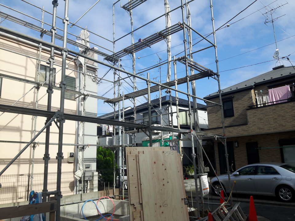 外壁施工が開始しました。