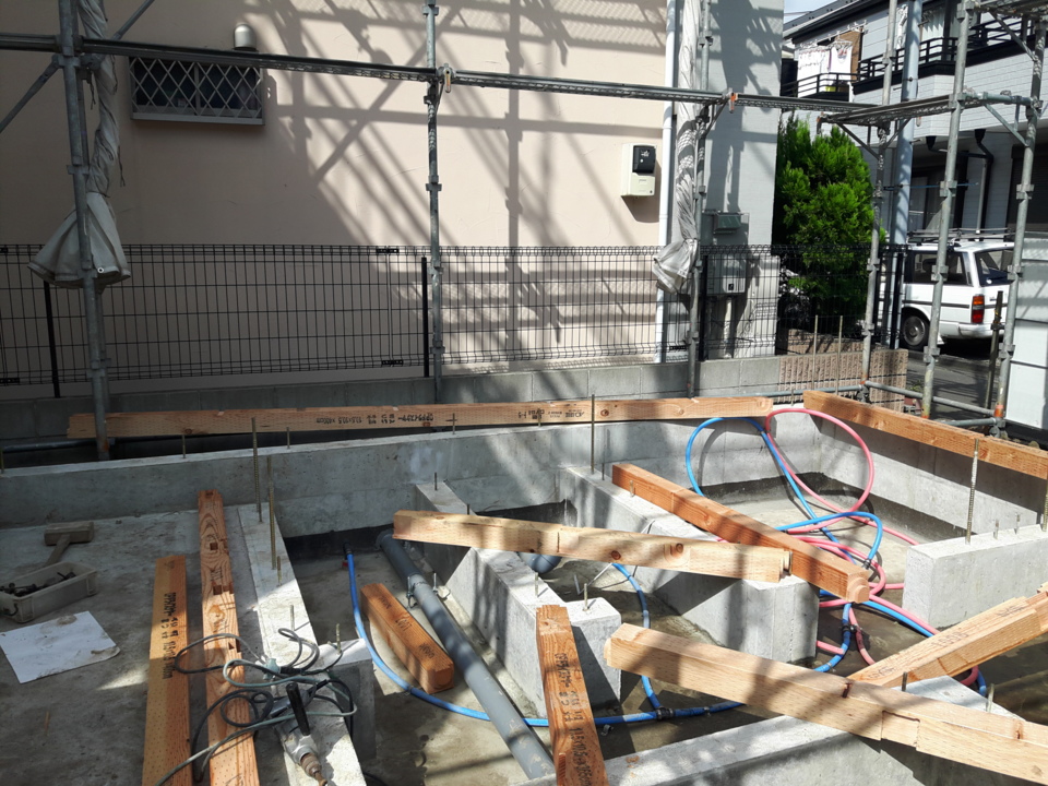 本日より、上棟前の土台敷きが始まりました。